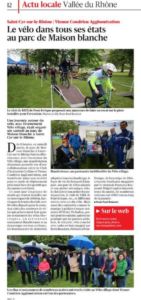 Le Dauphiné Libéré parle de nous dans son édition du 5 mai à l’occasion du Vélo Village qui s’est tenu le samedi 4 mai à Saint Cyr/Rhône