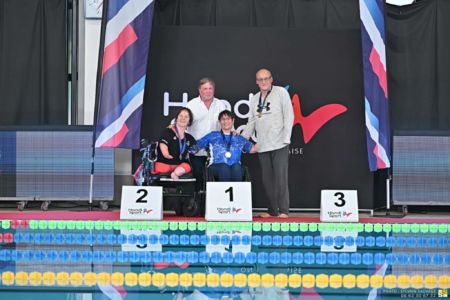 Une nageuse de l’AS Handivienne, Brigitte Pham-Cuc, était qualifiée. Brigitte était engagée sur 3 courses, le 100m nage libre, le 50m dos et le 50m nage libre.