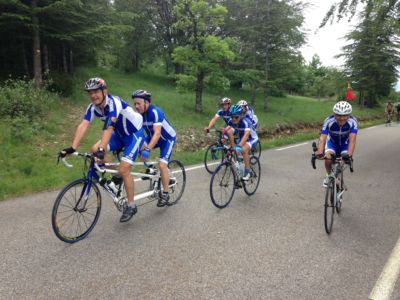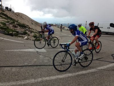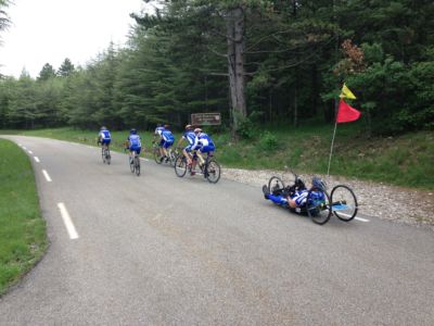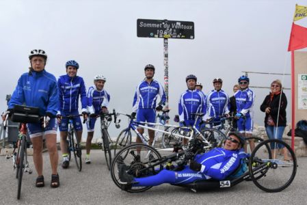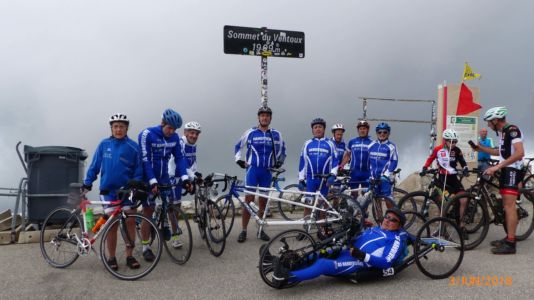 Quatorze Cyclistes de l’AS Handivienne (compétiteurs, loisirs ou accompagnateurs), se sont retrouvés à Sault (au pied du Ventoux), ce 3 juin, pour hisser après 26 Kms d’ascension, nos couleurs sur ce sommet mythique de la Provence.