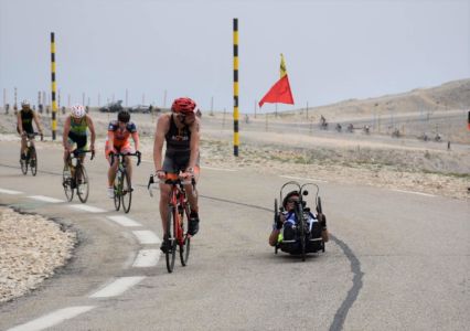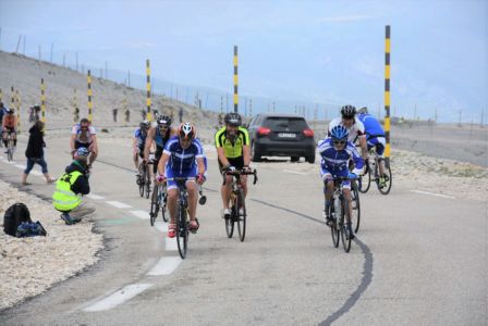 Le Ventoux appartient de plein droit aux cyclistes dont certain pense atteindre le graal en s’époumonant sur ses pentes et nous n’étions pas seuls, un triathlon se déroulait aussi dans ce cadre merveilleux (2500 M de natation, 90 Kms à vélo, 21 Kms de course à pieds), on peut toujours trouver plus fou ou plus ambitieux que soit…