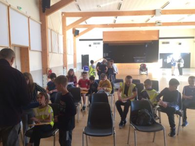 Dans un premier temps, les enfants sont invités à participer à un quizz (moitié en aveugle à l’écoute des questions, moitié en voyant lisant les mêmes questions), puis échangent sur la réponse à apporter et enfin, vote. Bonnes ou mauvaises, les réponses (nature d’un handicap, accessibilité, priorité, matériels), sont commentées par Léa et précisées par les représentants de l’association.