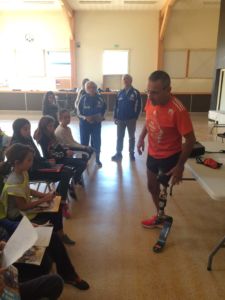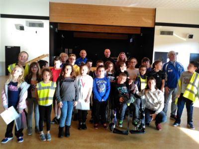 Pour terminer, tout le monde se retrouve pour la traditionnelle photo et pour un débriefing, où les enfants peuvent tous ensemble poser des questions aux athlètes et responsables de l’AS Handivienne. Aucun tabou dans les questions, aucune gêne dans les réponses. Les enfants veulent tout savoir de la vie quotidienne et de la pratique sportive de leurs « amis » et c’est aussi une grande joie pour ces derniers de faire partager aux enfant le témoignage de leur vécu, de l’utilité d’une activité sportive pour tous et plus encore pour une personne handicapée (autonomie, sociabilité), de leur joie de vivre(plus importante que les obstacles quotidiens), de leur fierté de repousser les limites du handicap et d’apporter à leur club et à leur ville, une image dynamique et positive.
