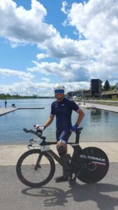 Une course qui ne s’est pas du tout déroulée comme j’aurais pu l’imaginer. Alors que j’installe mon vélo dans l’aire de transition, je me rends compte que l’attache de ma prothèse est en train de casser, ce qui arrive l’instant suivant. Nous sommes à 40 minutes du départ et je dois trouver une solution, sous peine de ne pas pouvoir courir. Je réussi à bricoler une attache avec du scotch et des scratchs, avec l’aide du staff présent sur place et du mécano vélo de la course. Cela me coûtera beaucoup de temps en transition mais au moins, je pourrai prendre le départ de la course, tout en restant dans l’incertitude pendant toute la course de savoir si cela tiendrait ou pas.