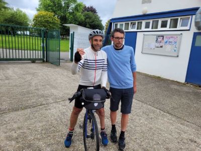 Retour en fanfare après 1085 km, 50h de vélo, 7200 mètres de dénivelé. Comité d’accueil du club, hyper sympa.